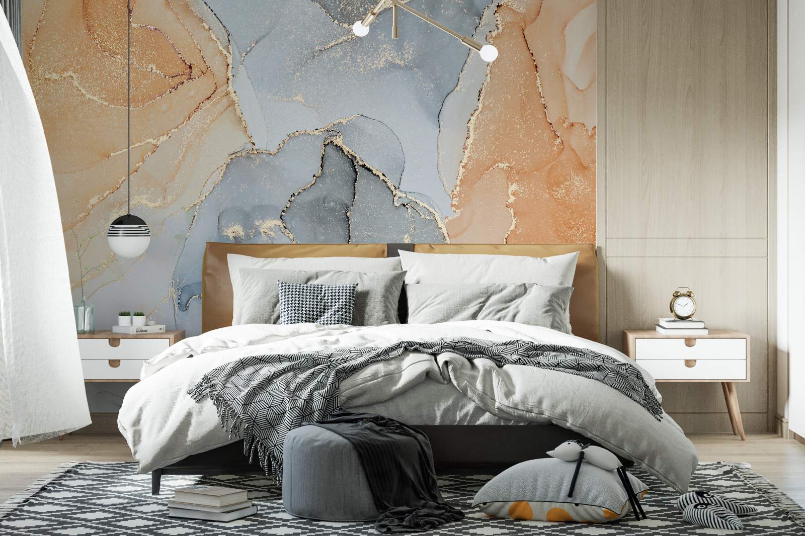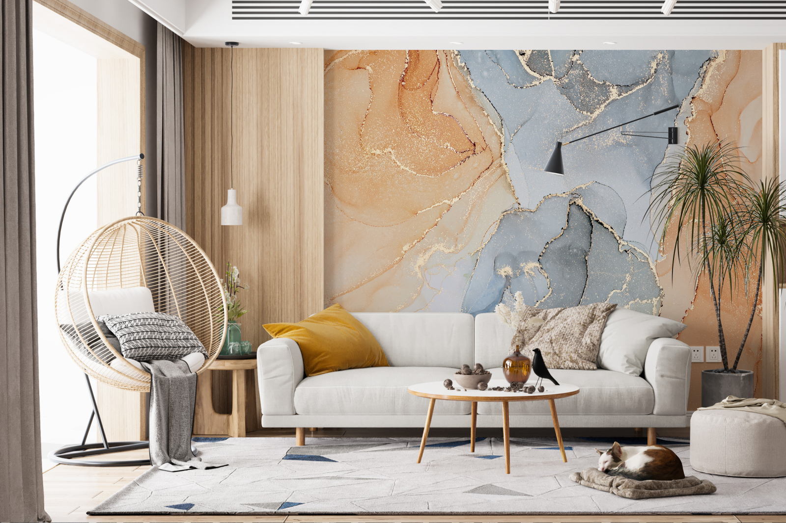 Colecția de tapet Modern ilustrează o alchimie a nuanțelor, o armonie fascinantă care se va răsfrânge asupra întregului spațiu. Un joc cromatic care captivează și amintește de dansul rebel al liniilor de marmură.