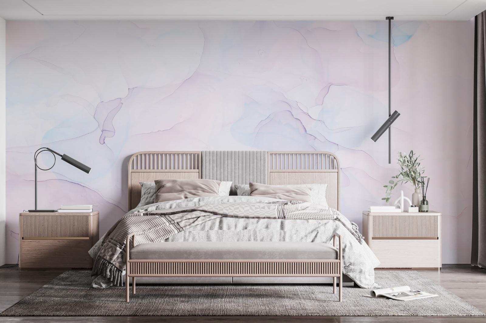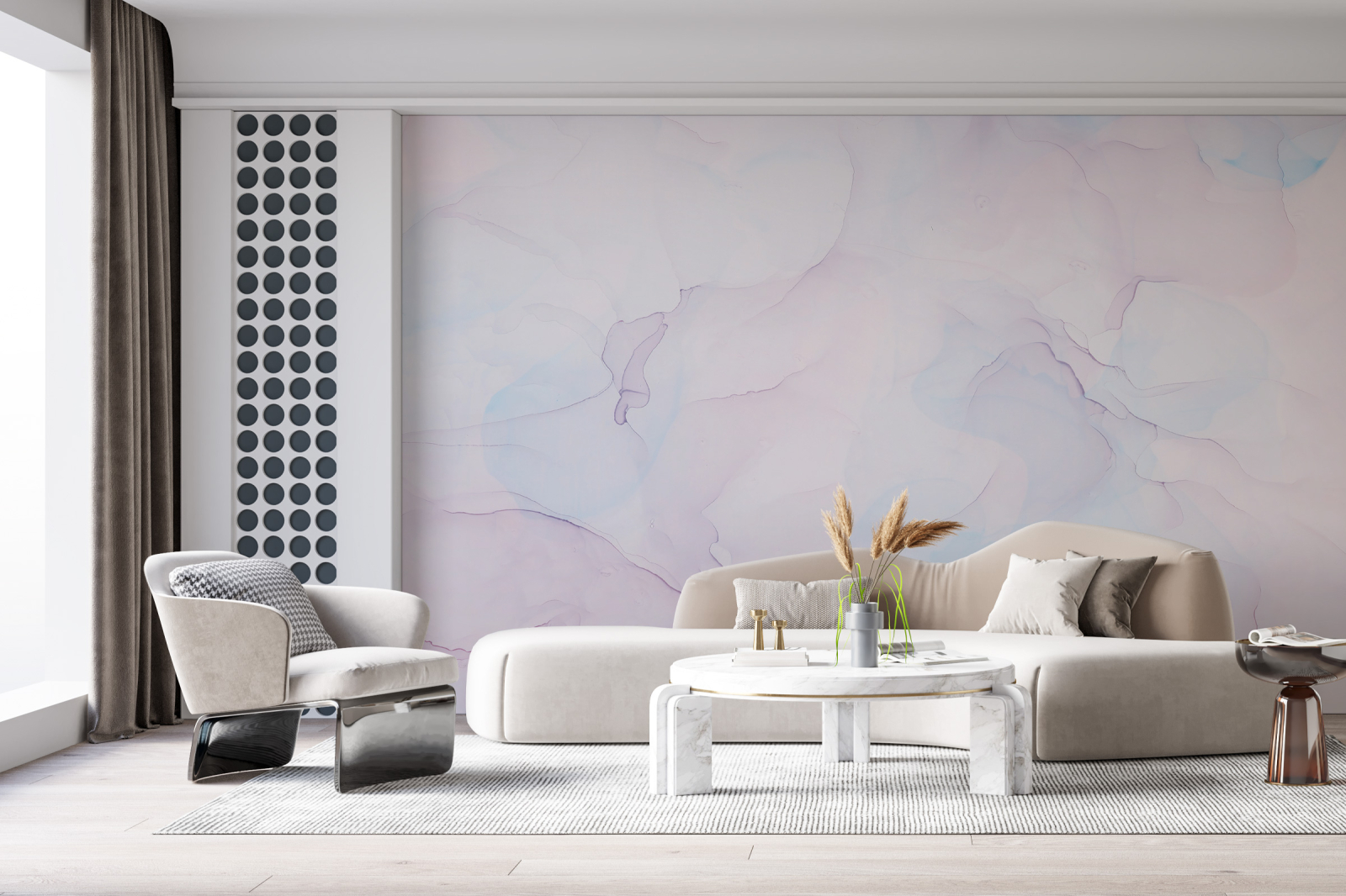 Colecția de tapet Modern ilustrează o alchimie a nuanțelor, o armonie fascinantă care se va răsfrânge asupra întregului spațiu. Un joc cromatic care captivează și amintește de dansul rebel al liniilor de marmură.