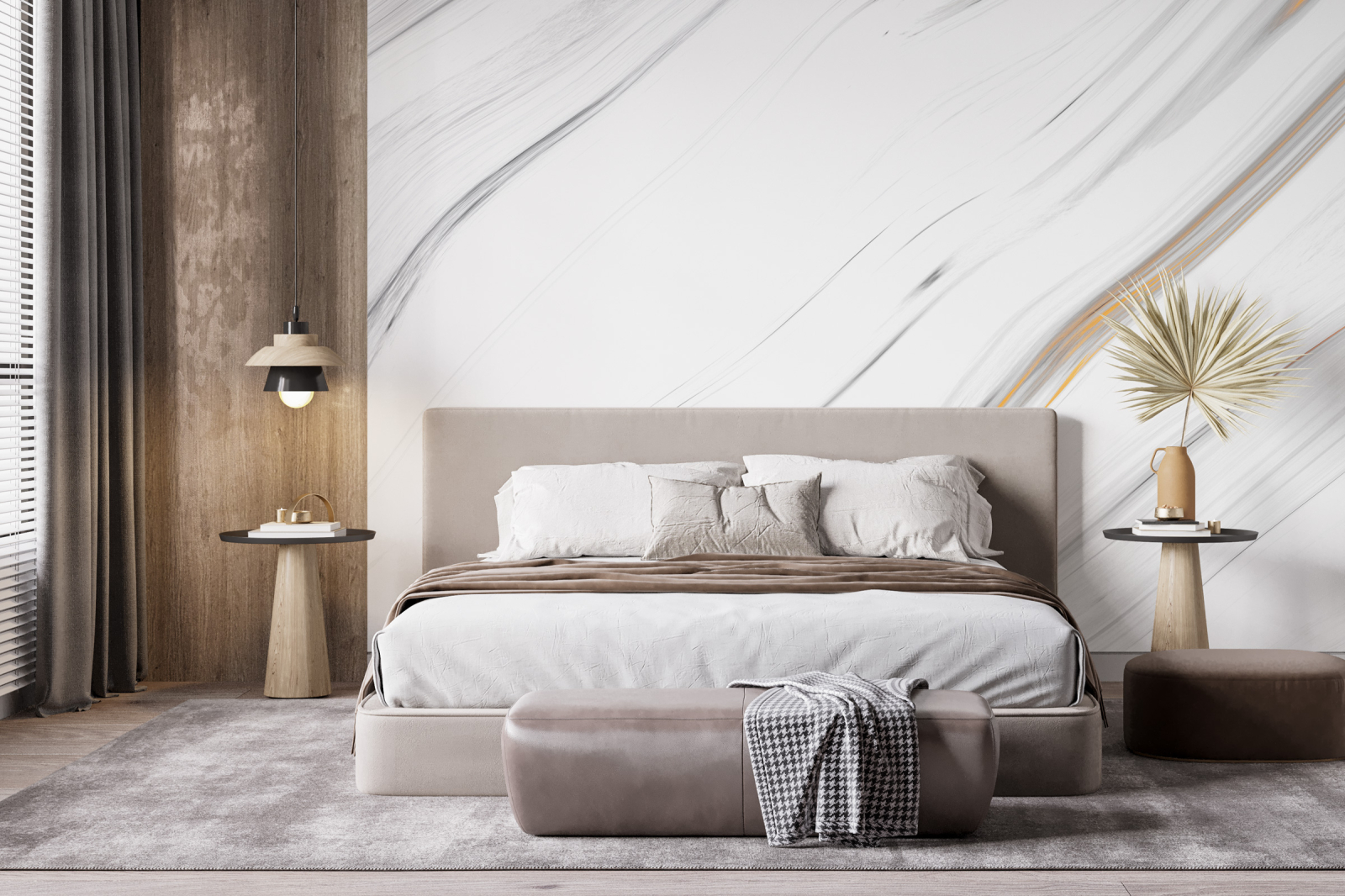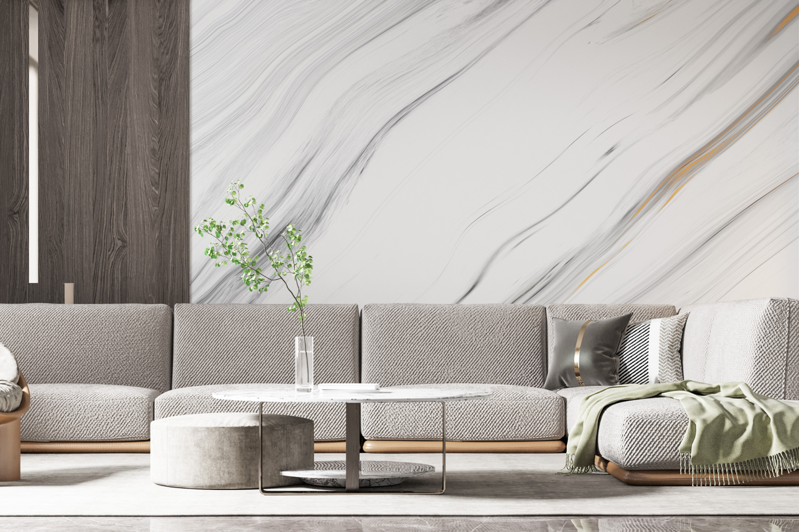 Colecția de tapet Modern ilustrează o alchimie a nuanțelor, o armonie fascinantă care se va răsfrânge asupra întregului spațiu. Un joc cromatic care captivează și amintește de dansul rebel al liniilor de marmură.